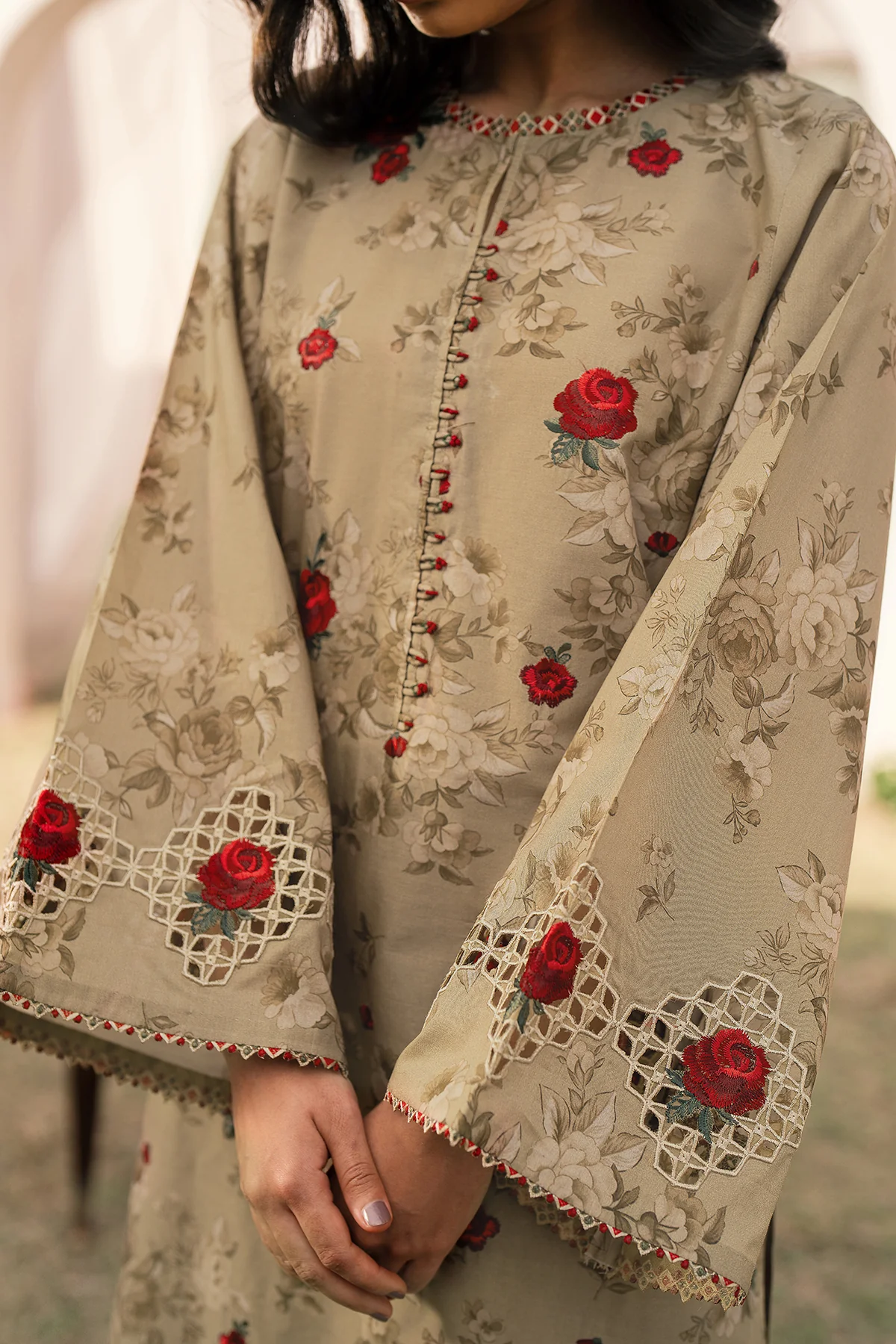 EMBROIDERED PRINTED LAWN UF-594