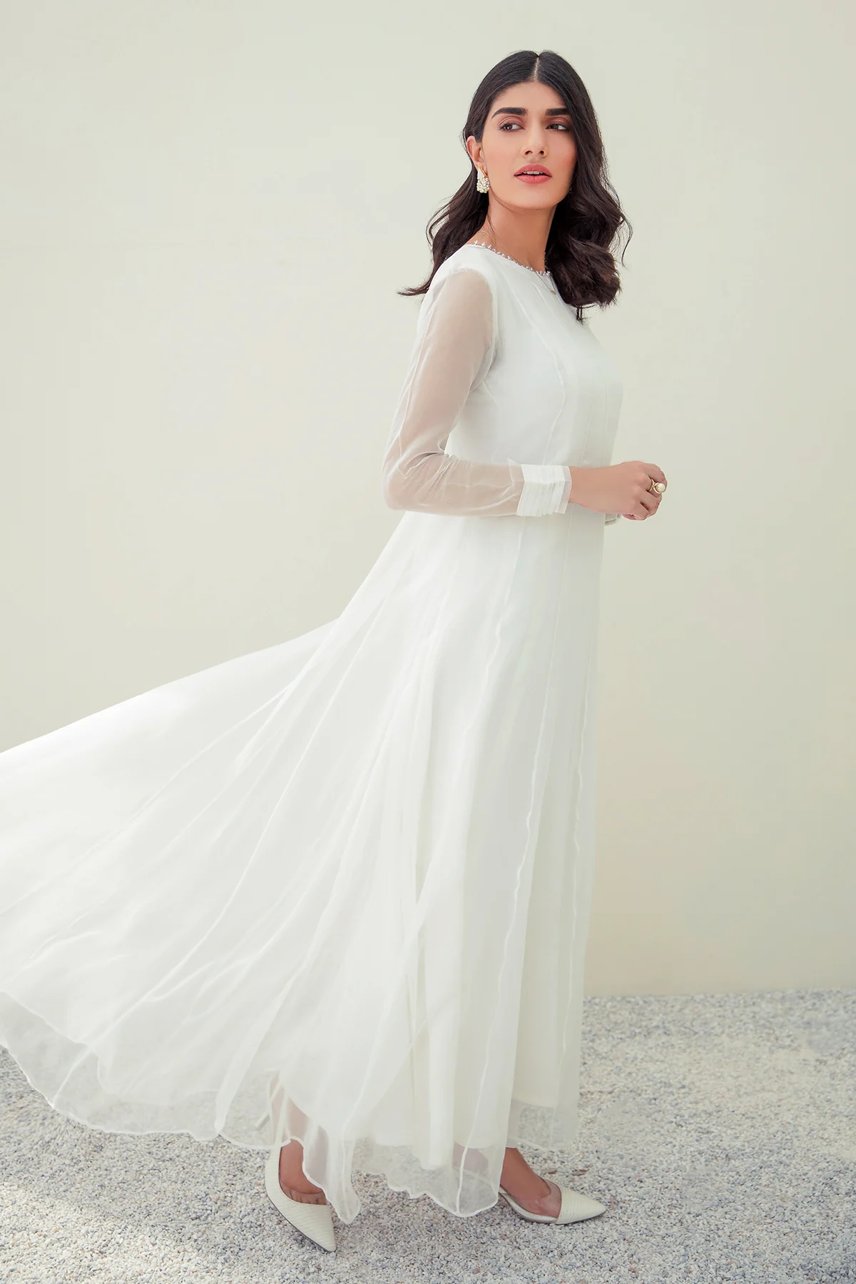 This two-piece fabric shirt and chiffon fabric trouser ensemble is modeled in a small size. Actual colors may vary slightly from the image displayed.